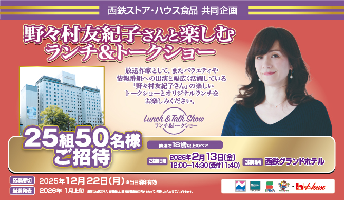 ハウス食品×西鉄ストア「野々村友紀子さんと楽しむランチ&トークショー」開催!