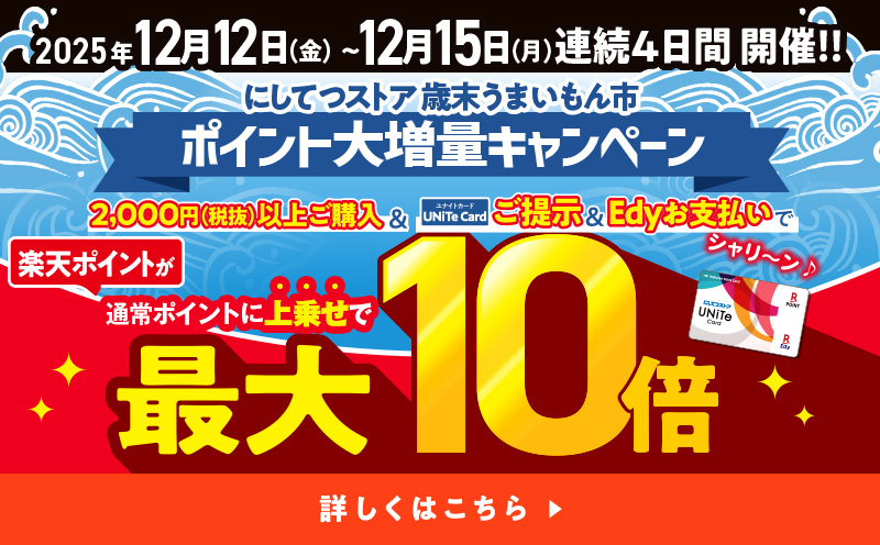 楽天ポイント最大10倍!「歳末うまいもん市 ポイント大増量キャンペーン」開催!(12月12日~15日)