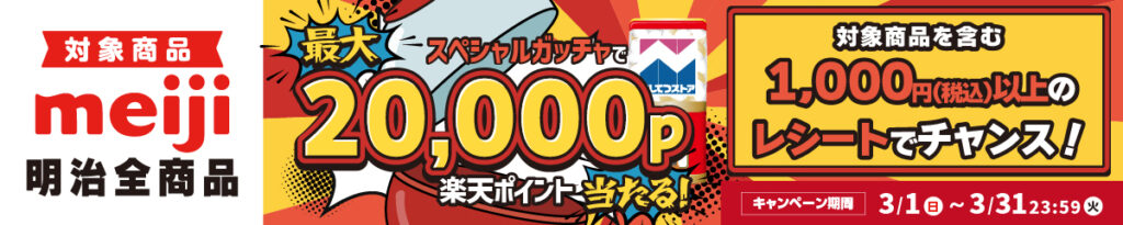 明治×西鉄ストア ガッチャ!で「楽天ポイントプレゼントキャンペーン」3月開催!