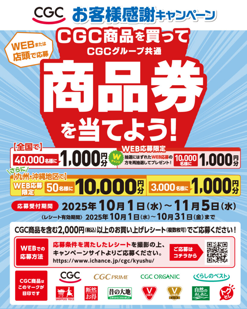 10月1日より、CGC商品を含む2,000円(税込)以上のレシートで応募できる「CGCお客様感謝キャンペーン」を開催します!