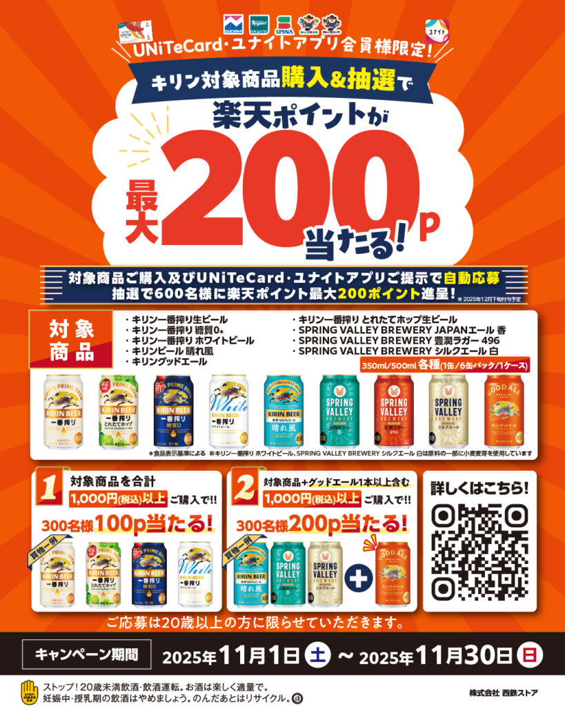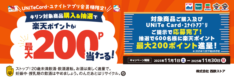 西鉄ストア「キリンビールのお酒を購入して楽天ポイントあたる!」キャンペーン開催!